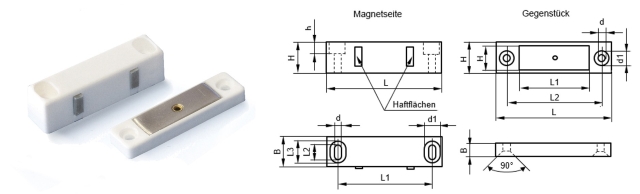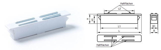 | Item-no. | L | L1 | L2 | B | B1 | H | H1 | Force (kg) | Color | Counterpart |