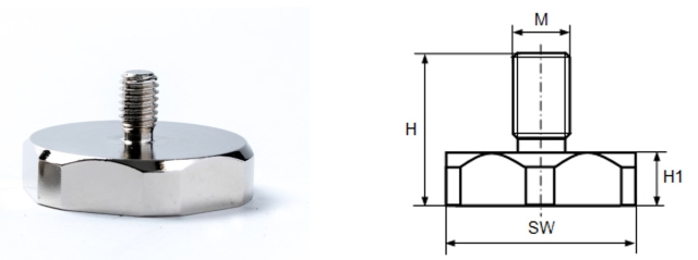 Pot magnets NdFeB with hexagon and external thread